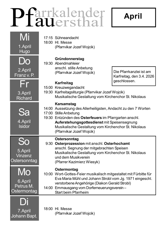 ACHTUNG – Samstag-Abend-Gottesdienste: